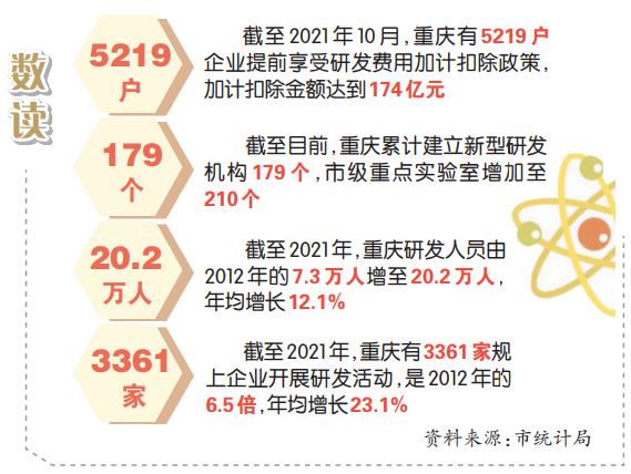 9月28日,市統(tǒng)計(jì)局發(fā)布《十八大以來重慶科技發(fā)展報(bào)告》(下稱《報(bào)告》)?!秷?bào)告》稱,黨的十八大以來,重慶圍繞成渝地區(qū)雙城經(jīng)濟(jì)圈建設(shè),以及建成具有全國影響力的科技創(chuàng)新中心這兩條主線,全面實(shí)施創(chuàng)新驅(qū)動(dòng)發(fā)展戰(zhàn)略,10年來研發(fā)投入年均增長15.9%。
