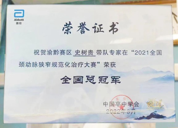 近日,中國卒中學會神經(jīng)介入分會第七屆學術年會暨第十八屆腦血管病天壇之聲會議上,重慶松山醫(yī)院神經(jīng)內(nèi)科/神經(jīng)外科主任史樹貴帶隊渝黔賽區(qū),斬獲“全國頸動脈狹窄規(guī)范化治療大賽”冠軍。