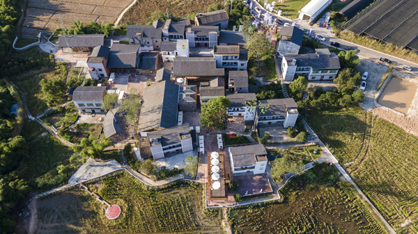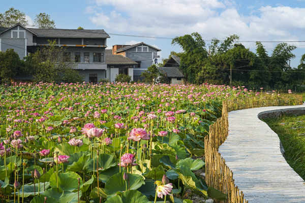 幾十棟小樓,磚墻青瓦,錯(cuò)落有致。推開(kāi)窗,遠(yuǎn)山蒼翠,花海、稻田成片。