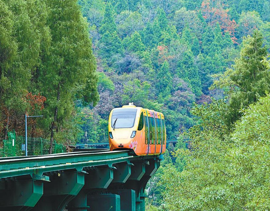 近年來,重慶市酉陽土家族苗族自治縣推動旅游產(chǎn)業(yè)發(fā)展,帶動群眾增收致富。今年上半年全縣接待游客549萬人次,旅游綜合收入實現(xiàn)同比增長。圖為近日,一輛軌道觀光車在該縣桃花源國家森林公園內(nèi)行駛。