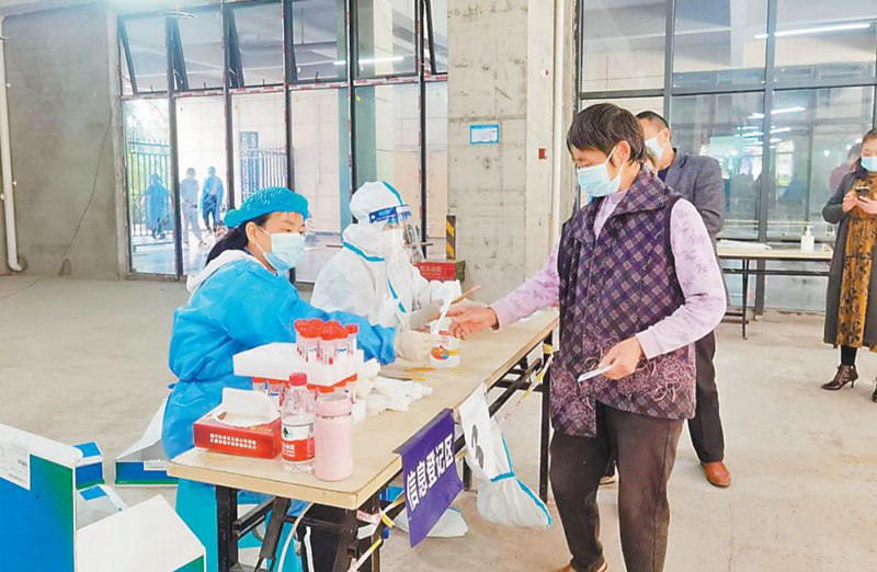 十月十四日,舉人壩社區(qū)干部和志愿者在核酸采集一線。(受訪者供圖)