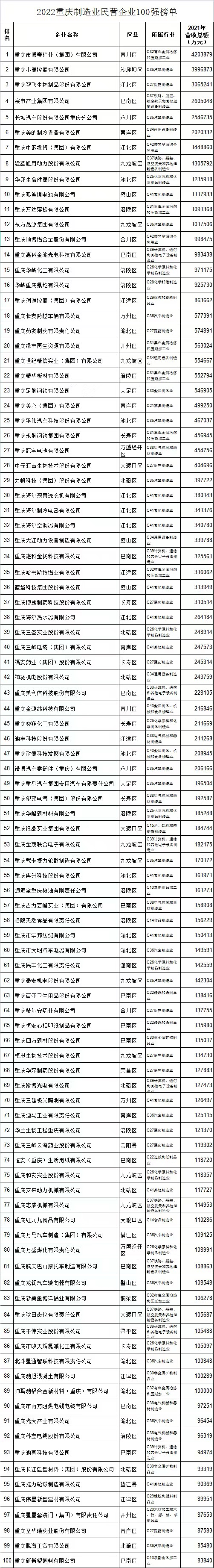 附:2022重慶民營企業(yè)100強榜單;2022重慶制造業(yè)民營企業(yè)100強榜單。