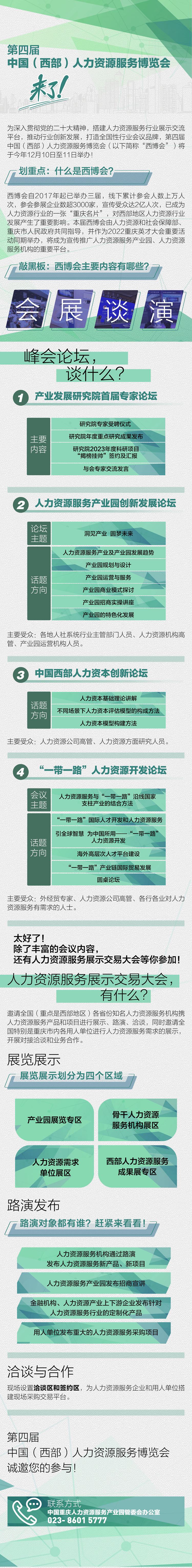 中國(guó)重慶人力資源服務(wù)產(chǎn)業(yè)園管委會(huì)消息,作為2022重慶英才大會(huì)的重要活動(dòng)之一,第四屆中國(guó)(西部)人力資源服務(wù)博覽會(huì)(以下簡(jiǎn)稱“西博會(huì)”)將于今年12月10日至11日在重慶國(guó)際博覽中心舉行。