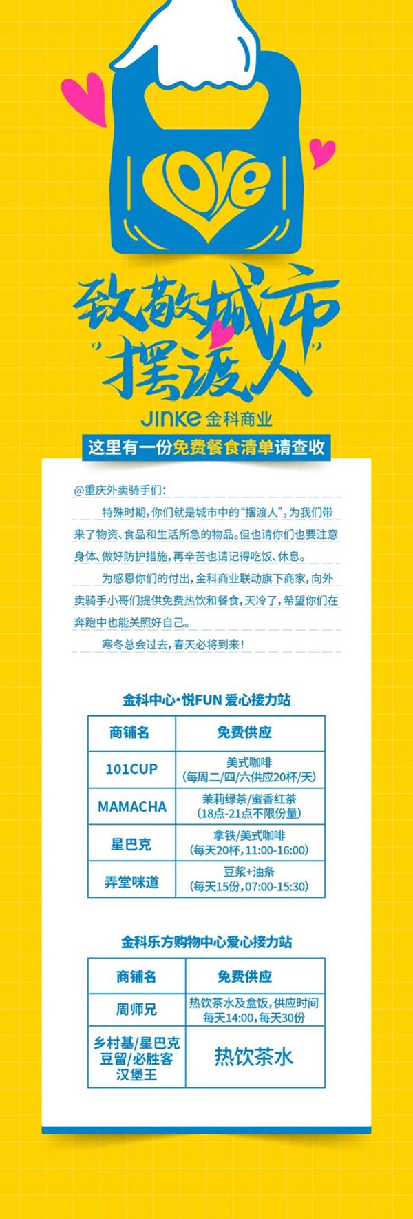 金科商業(yè)聯(lián)動(dòng)商家為外賣騎手提供免費(fèi)餐食熱飲