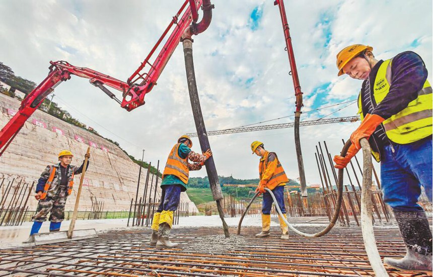 近日,重慶軌道交通18號線金鰲寺車輛段運用庫施工現(xiàn)場,工人們在澆筑混凝土。隨著最后一車混凝土澆筑完畢,18號線最大單體建筑金鰲寺車輛段運用庫全面封頂。整個車輛段主體工程預(yù)計今年底完工,投用后可同時滿足56列軌道車輛停放,有效保障全線正常運營。