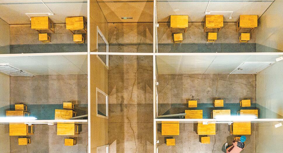 11月18日,位于重慶國(guó)際博覽中心的悅來(lái)方艙醫(yī)院14個(gè)方艙全部建成投用,總建筑面積25萬(wàn)平方米,可容納患者1.2萬(wàn)余名。方艙內(nèi)24小時(shí)均有醫(yī)護(hù)人員服務(wù),還安排有學(xué)習(xí)區(qū)、心理疏導(dǎo)人員等。截至18日24時(shí),悅來(lái)方艙醫(yī)院已累計(jì)收治患者5000余名。圖為方艙設(shè)置的學(xué)習(xí)區(qū)。記者 陳維燈 鄭宇 攝影報(bào)道/視覺(jué)重慶