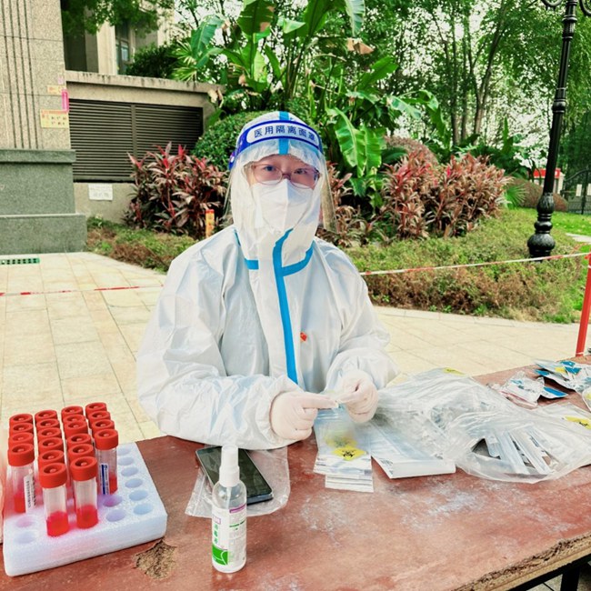 11月,重慶暴發(fā)新一輪疫情,王靜在線上居家辦公之余,還在社區(qū)擔(dān)負(fù)起志愿者核酸登記、秩序維護(hù)、抗原發(fā)放等工作。