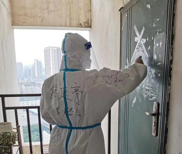 侯庭亭入戶采集核酸。燃?xì)饧瘓F供圖