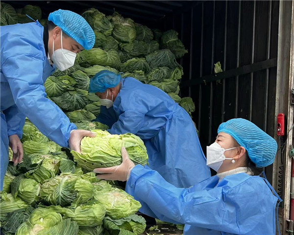 工作人員正在搬運愛心企業(yè)捐贈的蔬菜。主辦方供圖