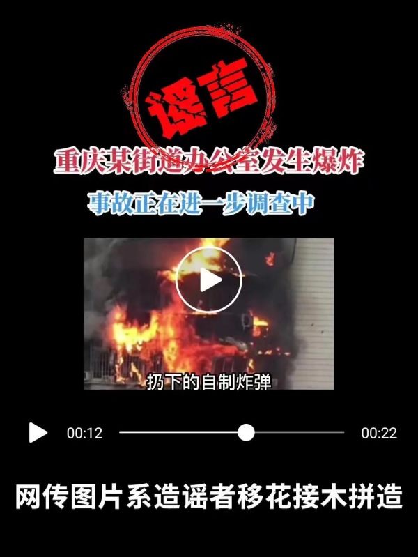 - 網(wǎng)傳重慶南岸區(qū)一街道辦公室發(fā)生爆炸系謠言