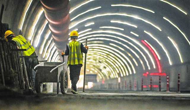 12月8日,科學城金鳳隧道工程,工人正在加緊施工。