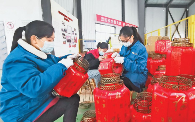 12月8日,銅梁區(qū)太平鎮(zhèn)坪漆村鄉(xiāng)村振興車間,農(nóng)家婦女正在趕制訂單燈籠。近來,該區(qū)40多個鄉(xiāng)村振興車間在做好疫情防控的基礎上全部復工,上千名村民在家門口務工增收。通訊員 趙武強 攝/視覺重慶