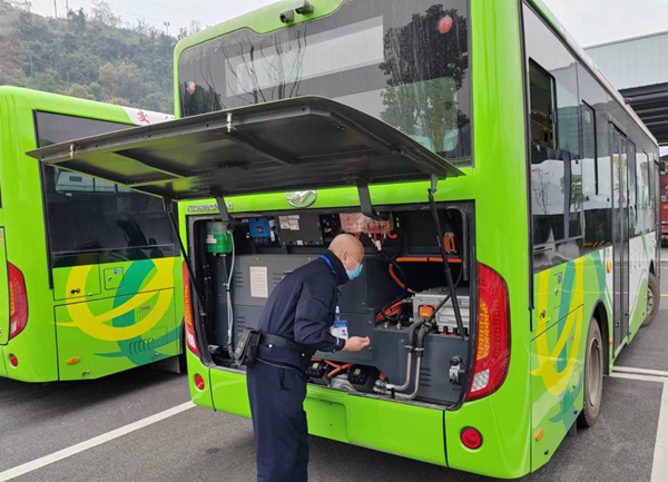 為了助力客運(yùn)企業(yè)復(fù)工復(fù)產(chǎn),12月13日,云陽縣公安局交巡警大隊(duì)車管所副所長李越帶領(lǐng)民警何慶云來到曙光停車場為萬汽集團(tuán)云陽公交公司的30輛待投入運(yùn)營的新能源公交車開展集中上門查驗(yàn)服務(wù)工作。