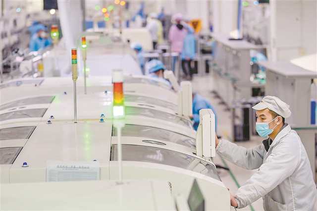 12月19日,西部(重慶)科學(xué)城,新普科技(重慶)有限公司生產(chǎn)線上,工人正趕制訂單產(chǎn)品。
