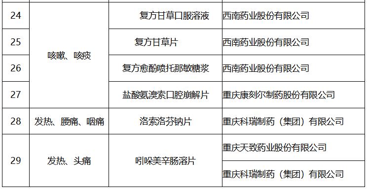 目錄結(jié)合全市重點(diǎn)醫(yī)藥企業(yè)新冠肺炎對(duì)癥預(yù)防和治療相關(guān)藥品信息,針對(duì)發(fā)熱、頭疼、咳嗽、咽痛等癥狀推薦29個(gè)地方化藥品種、48個(gè)地方中藥品種。