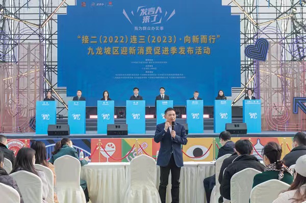 12月23日上午,“發(fā)言人來了”我為群眾辦實事 “接二(2022)連三(2023)·向新而行”九龍坡區(qū)迎新消費促進季新聞發(fā)布活動在九龍灘廣場舉行。本次發(fā)布活動聚焦九龍坡區(qū)迎新消費促進季活動相關(guān)內(nèi)容,與人民群眾面對面,以“你提問,我回答”的對話形式,開展信息發(fā)布和政策解讀,并就大家關(guān)心關(guān)注的一些問題進行現(xiàn)場解答。