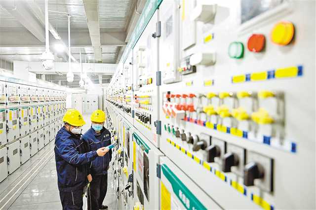 12月24日,工作人員在110千伏雙元智能變電站巡視設(shè)備運(yùn)行情況。