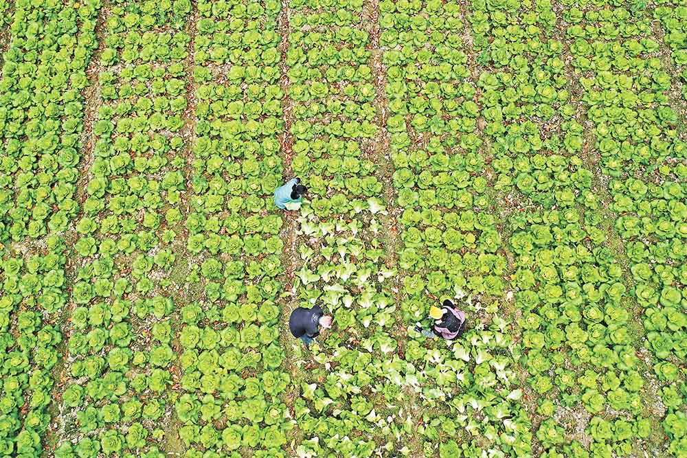 12月25日,黔江區(qū)沙壩鎮(zhèn)西泡村,村民在蔬菜基地采收白菜。