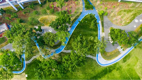 此外,改造提升中,通過重新梳理場地空間和交通流線,取消了原有中軸建筑,更新為2萬平方米的“市民大草坪”,提升園內視線通透性、交通通達性和空間功能的復合性,并以江景、山景、城景為背景打造“城市之門”,形成大尺度觀演空間,為公園內不定期舉行大型表演活動提供了可能。同時,在江邊、林下穿梭的寬1.5米長800米的藍色健身環(huán)道,將為市民提供散步、慢跑場所。
