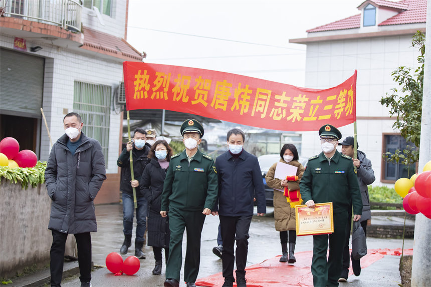 立功喜報(bào)送到唐煒家鄉(xiāng)。鄒毅攝