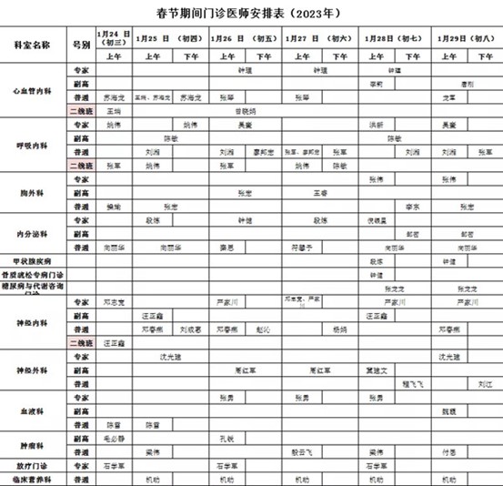 (二)1月24日(初三)上午半天門診?,F(xiàn)場掛號時間7:30-11:30,看診時間8:00-12:00。
