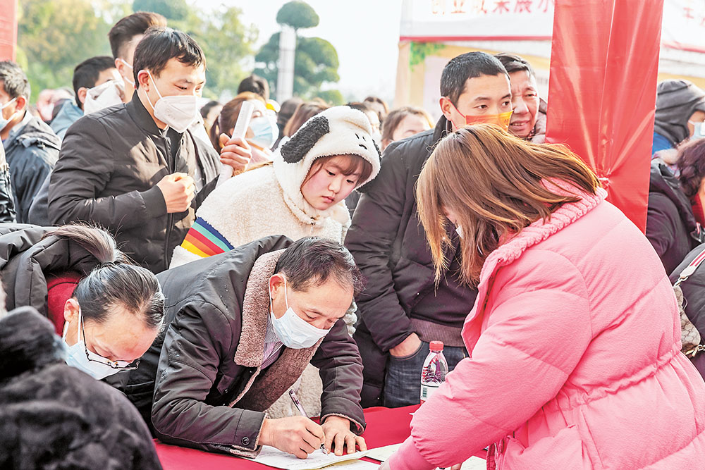 春節(jié)假期剛過(guò),連日來(lái),我市萬(wàn)州、璧山、梁平、秀山等多個(gè)區(qū)縣,積極搭建求職用工平臺(tái),舉辦招聘會(huì),方便廣大返鄉(xiāng)過(guò)年農(nóng)民工和當(dāng)?shù)厝罕娫诩议T(mén)口就業(yè),同時(shí)也幫助企業(yè)解決用工難題。特約攝影 瞿明斌/視覺(jué)重慶