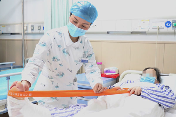 護士指導(dǎo)患者進行功能鍛煉。蔣永勁攝
