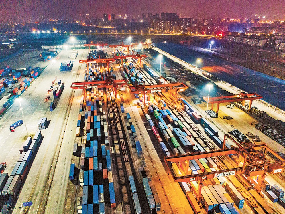 今年以來,重慶多舉措加速外貿(mào)復(fù)蘇增效,通過中歐班列、西部陸海新通道、長江黃金水道、渝滿俄班列等出海出境通道,有效加快重慶本地生產(chǎn)企業(yè)復(fù)工復(fù)產(chǎn)步伐,助力企業(yè)“走出去”,也為通道沿線企業(yè)出海提供有力支撐。特約攝影 孫凱芳/視覺重慶