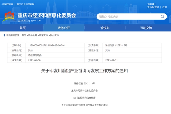 - 川渝出臺鋁產(chǎn)業(yè)鏈協(xié)同發(fā)展方案