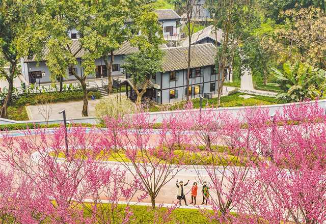 “山城特殊的地形,也讓喬木的群體景觀效果有了更大的發(fā)揮空間?!绷温斎Q,在平原城市市民只能以較少的角度賞花。但在重慶,成片成群的紅梅可以出現(xiàn)在坡坎崖、屋頂?shù)攘Ⅲw綠化中,欣賞視角也不局限于平視,可以多角度觀賞,怎么看都美。