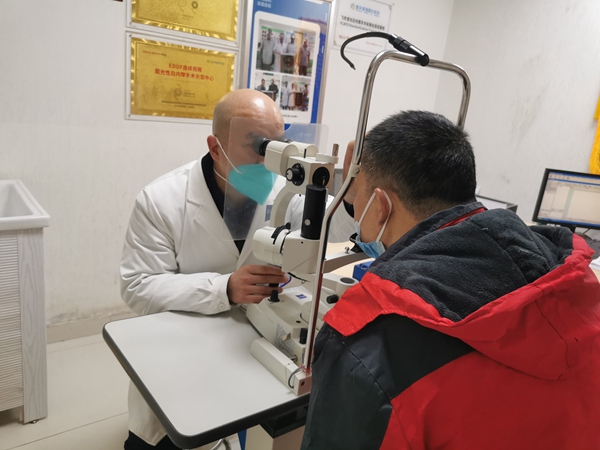 陳伯凡為患者檢查視力情況。重慶普瑞眼科醫(yī)院供圖