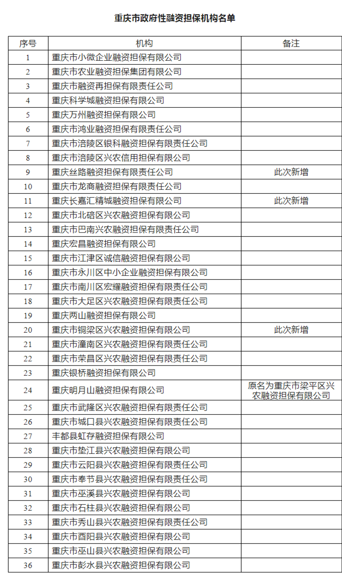新增3家!重慶市政府性融資擔(dān)保機(jī)構(gòu)增至36家