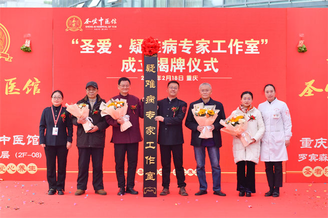 疑難病中醫(yī)專家工作室揭牌。重慶圣愛中醫(yī)館供圖