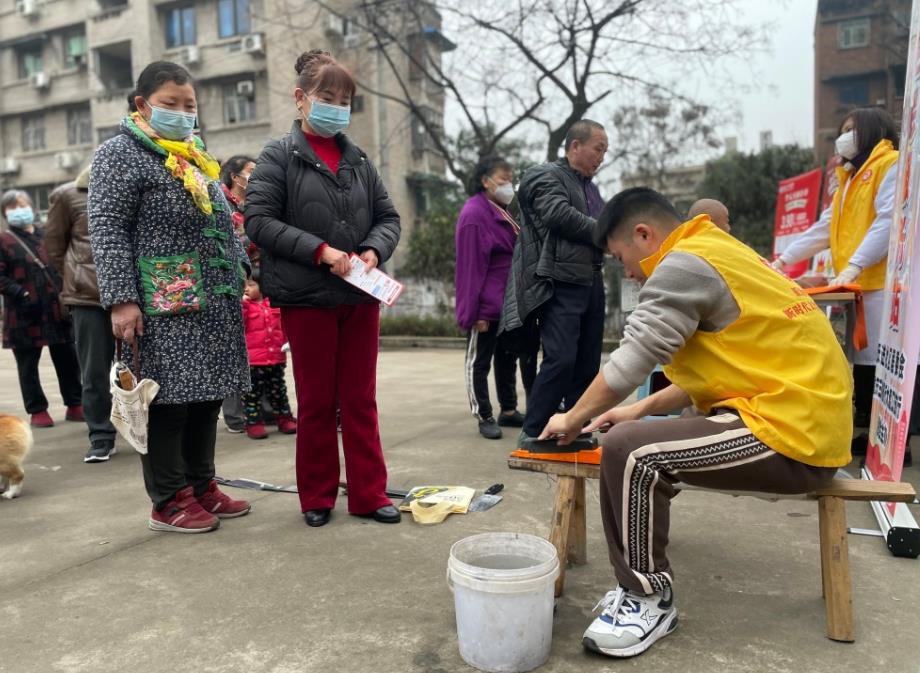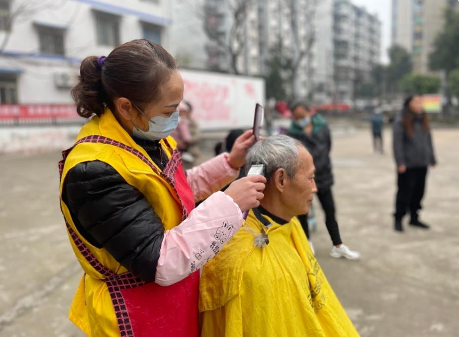 2月20日,大渡口區(qū)躍進(jìn)村街道躍進(jìn)社區(qū)在社區(qū)廣場開張社區(qū)公益集市,轄區(qū)有著理發(fā)、磨刀、修鞋等手藝的居民提供“連心”志愿便民服務(wù),吸引100多名居民參與。
