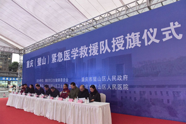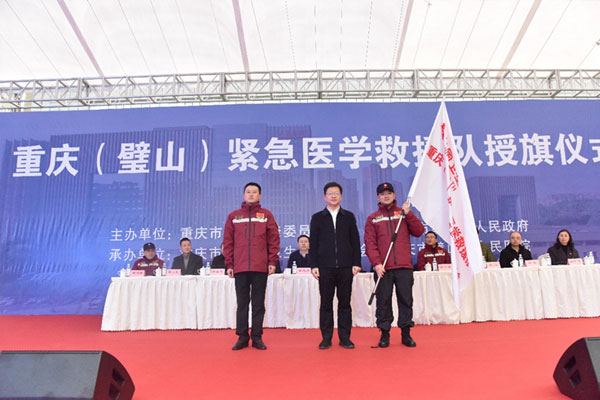 重慶(璧山)緊急醫(yī)學(xué)救援隊(duì)授旗儀式。璧山區(qū)衛(wèi)生健康委供圖