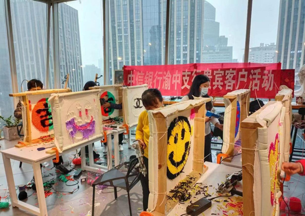 舉辦“DIY地毯”活動(dòng)。中信銀行重慶分行供圖