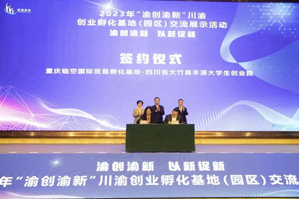 在隨后進(jìn)行的川渝創(chuàng)業(yè)孵化基地(園區(qū))協(xié)同發(fā)展簽約儀式上,重慶臨空國際貿(mào)易孵化基地、四川大竹大學(xué)生創(chuàng)業(yè)園“牽手”合作。雙方將在運(yùn)營管理、創(chuàng)業(yè)服務(wù)、異地孵化、在孵企業(yè)(項目)對接等四大方面開展合作,建立線上創(chuàng)業(yè)服務(wù)共享平臺,采取在線直播等線上交流形式,共同舉辦項目問診、創(chuàng)業(yè)沙龍、創(chuàng)業(yè)講堂等基地(園區(qū))創(chuàng)業(yè)服務(wù)活動,促進(jìn)雙方創(chuàng)業(yè)服務(wù)資源共享。
