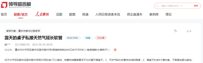 辦實(shí)事|群眾反映火鍋店私接天然氣軟管存隱患 重慶沙坪壩:立即整改