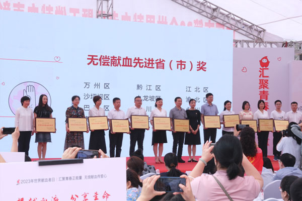 活動發(fā)布了今年世界獻血者日活動的主題:“匯聚青春正能量,無償獻血傳愛心”。同時還舉行了2020-2021年度全國無償獻血表彰重慶地區(qū)頒獎儀式,為獲獎代表頒發(fā)了無償獻血先進省(市)獎、無償獻血奉獻獎(終身榮譽獎、金、銀、銅獎),促進獎(個人獎、單位獎、特別獎),志愿服務(wù)獎、無償捐獻造血干細胞獎(奉獻獎和特別獎)等共計5個大項11個小項的獎項。據(jù)統(tǒng)計,重慶本輪無償獻血表彰共有11606人、16個單位及12個區(qū)縣獲獎。