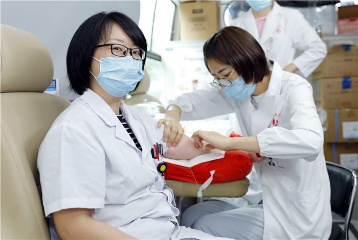 活動現(xiàn)場井然有序,醫(yī)護工作者們保持著安全距離,認真按照流程填寫獻血登記,完成量血壓、化驗和抽血。他們中,有剛下夜班的醫(yī)生護士,也有正在調(diào)休卻專程趕來的員工。身為醫(yī)務工作者,他們比常人更懂得臨床用血的緊張性,也更能體會血液對于生命搶救的重要性,因此得知有獻血活動,大家都主動積極報名。