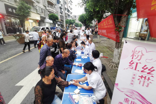 義診現(xiàn)場,醫(yī)院黨員醫(yī)療服務(wù)隊為李市鎮(zhèn)居民提供了關(guān)節(jié)、頸肩腰、乳腺、甲狀腺等方面的咨詢服務(wù),并結(jié)合群眾提供的病史資料,綜合分析給予治療建議。本次活動持續(xù)近2個小時,服務(wù)患者200余人,發(fā)放健康宣傳冊500余份。