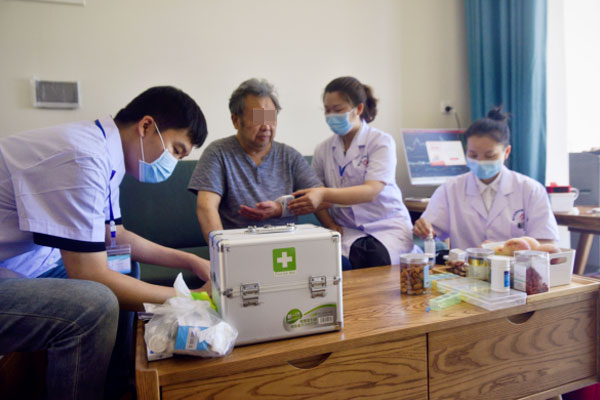 上門為前來(lái)避暑的市民開展健康服務(wù)。陶涵攝