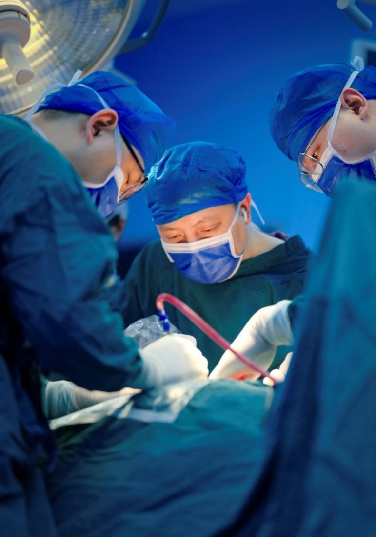 陶銳(右二)帶領(lǐng)團(tuán)隊(duì)開展手術(shù)。重醫(yī)附屬璧山醫(yī)院供圖