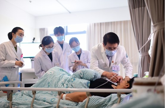 彭李華(右二)帶隊(duì)查房。重醫(yī)附屬璧山醫(yī)院供圖