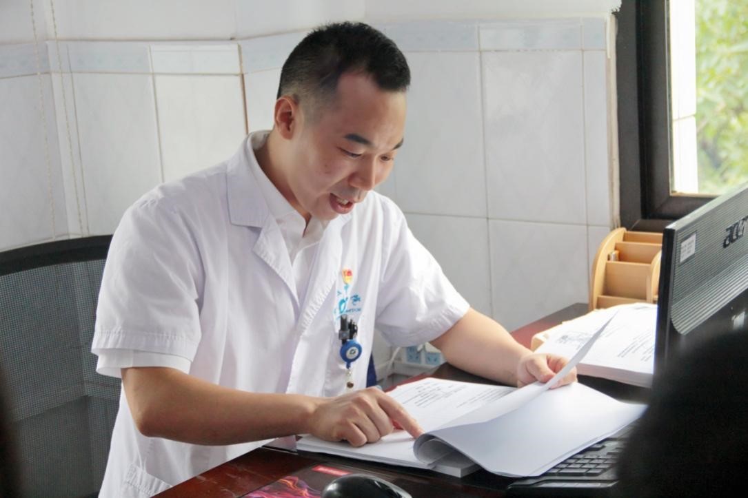 查看病例。璧山區(qū)中醫(yī)院供圖