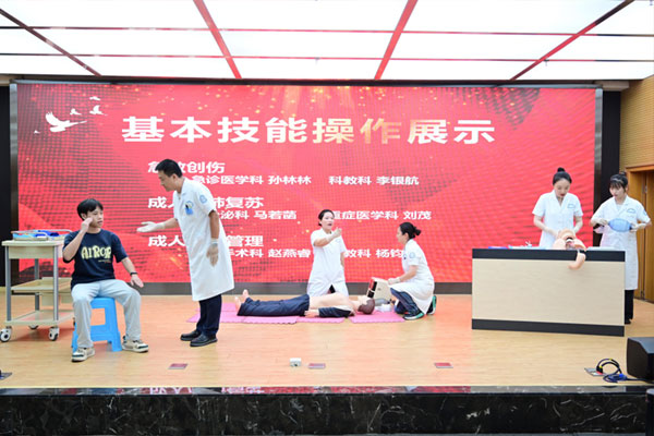 在基本技能操作展示環(huán)節(jié),6名院前醫(yī)務(wù)人員進(jìn)行了“急救創(chuàng)傷操作”“成人心肺復(fù)蘇操作”“成人氣道管理操作”技能展示。