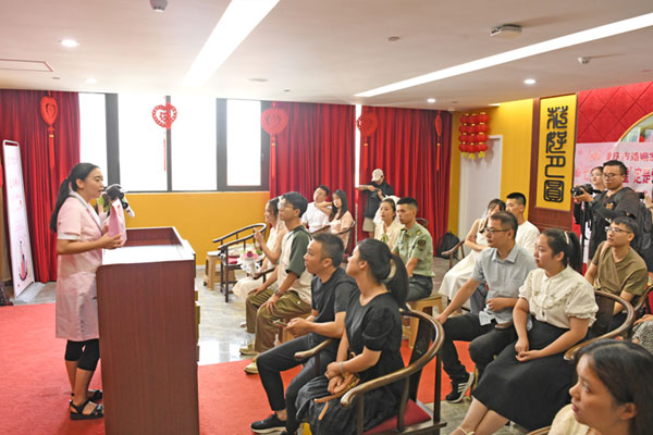在中式頒證廳,醫(yī)院保健院婚檢中心主任邱婭為新婚夫妻講解了正確避孕、如何備孕和葉酸增補(bǔ)等相關(guān)知識(shí),呼吁新婚夫妻重視自身健康,倡導(dǎo)優(yōu)生優(yōu)育,守好出生缺陷第一道防線。