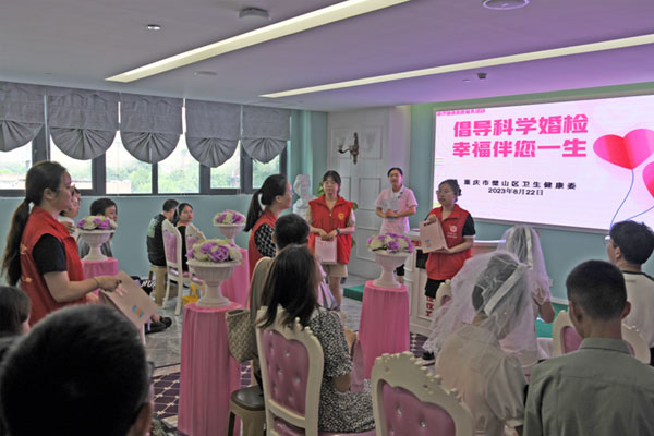 8月22日,璧山區(qū)婦幼保健院、璧山區(qū)民政局婚姻登記處攜手璧山區(qū)和平社會(huì)工作服務(wù)中心在璧山區(qū)婚姻登記處開展集體頒證暨“倡導(dǎo)科學(xué)婚檢、幸福伴您一生”婚育保健知識(shí)宣傳活動(dòng),為新人們送上一份婚前健康禮包。