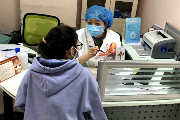 為患者講解。長(zhǎng)壽區(qū)婦幼保健院供圖