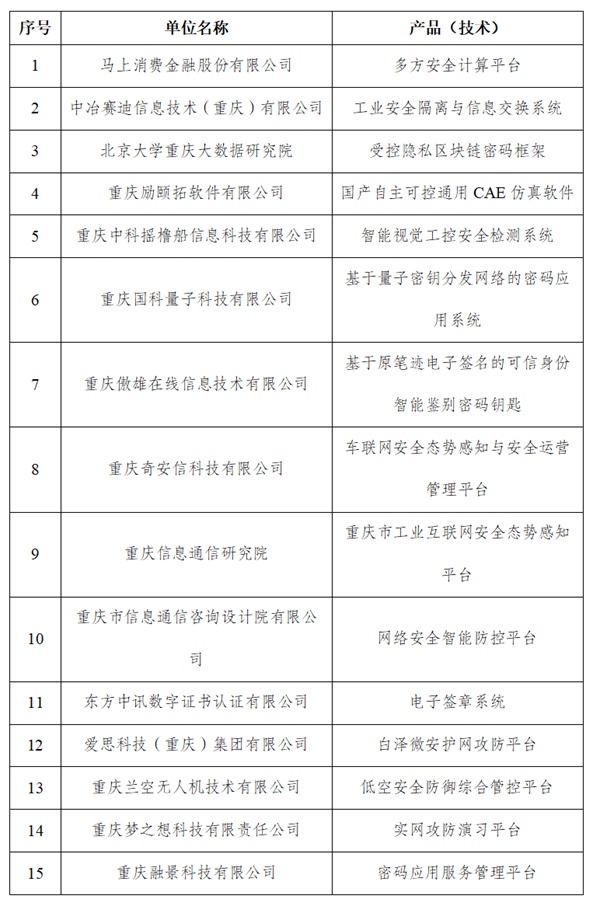 附:重慶市優(yōu)秀網(wǎng)絡(luò)安全產(chǎn)品和技術(shù)名單